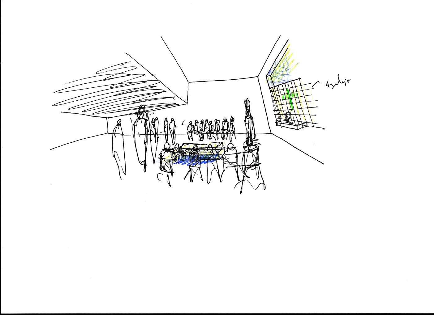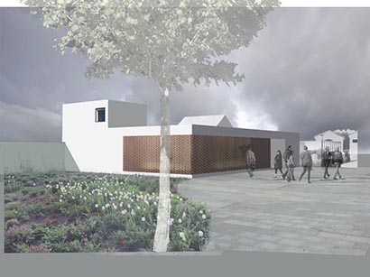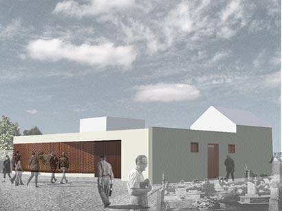 Una antigua capilla de un cementerio pierde su función y uso. Se pretende transformar todo su espacio interior y exterior en el nuevo Tanatorio para el pueblo. Se establece un velo como fachada ejecutado en un ladrillo manual. Dos volúmenes se destacan con su forma primaria. Estos sirven para iluminar cenitalmente las capillas mortuorias. Desde el interior se puede ver el que viene y el que visita no invade el duelo del que está en su interior.